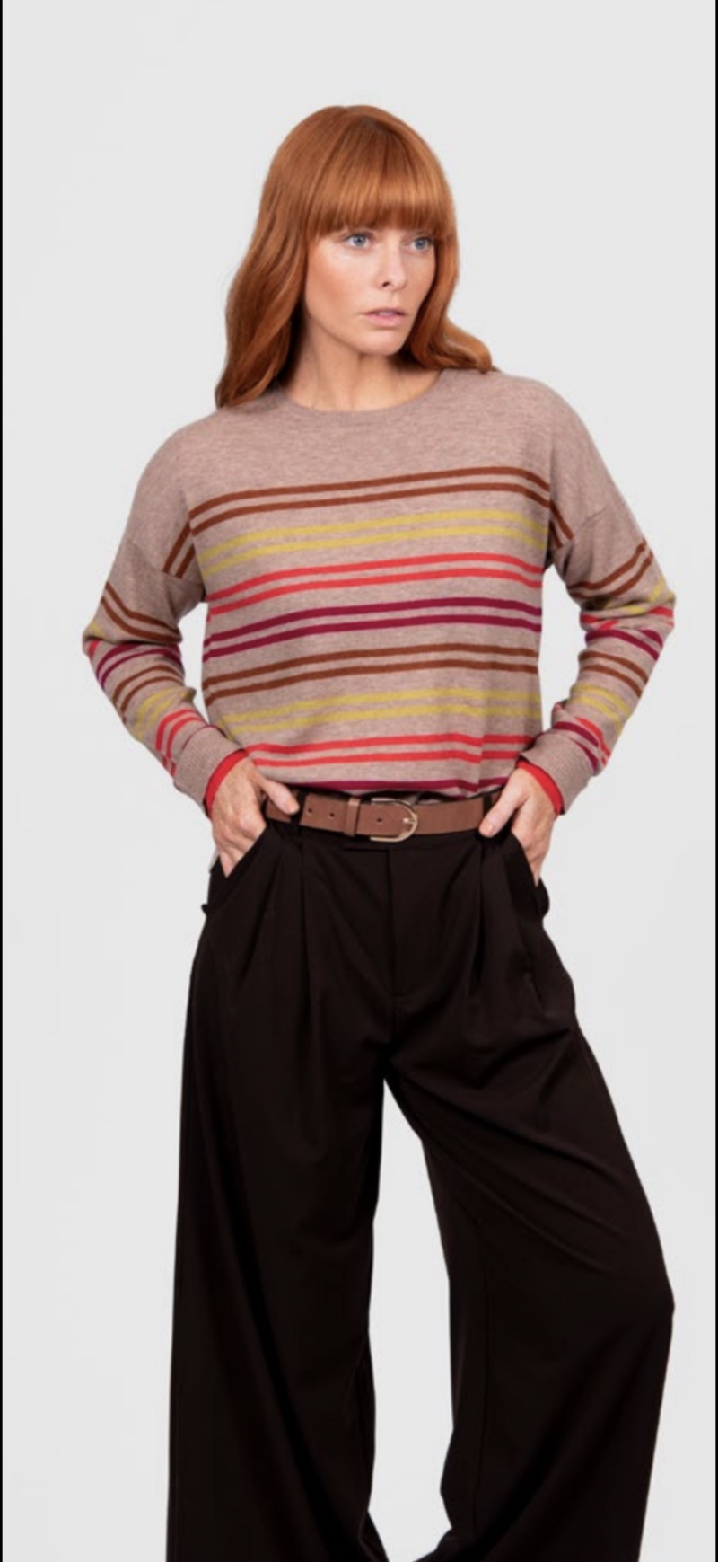 Featuring a relaxed fit and modern multi-stripe design in mid grey tones, this pullover is perfect for easy layering and everyday styling.