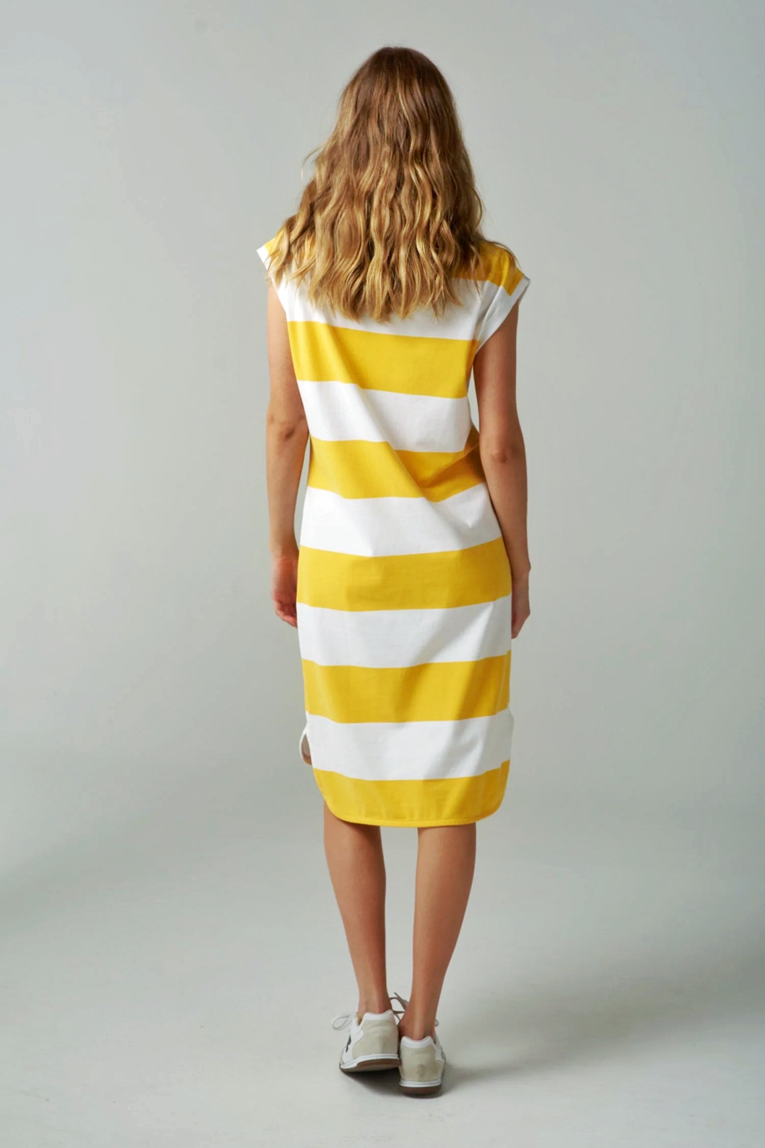 The easiest dress you’ll need this summer.Made from 100% cotton jersey. Features include crew neck, extended shoulder & curved side splits & hligh low hem.