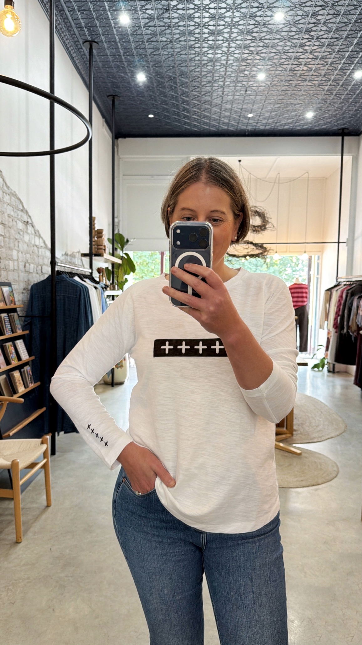Long sleeve raglan tee feauring white and chocolate cross detail on the front & sleeve. Pairs perfectly with the CPS chocolate joggers for an easy weekend outfit.