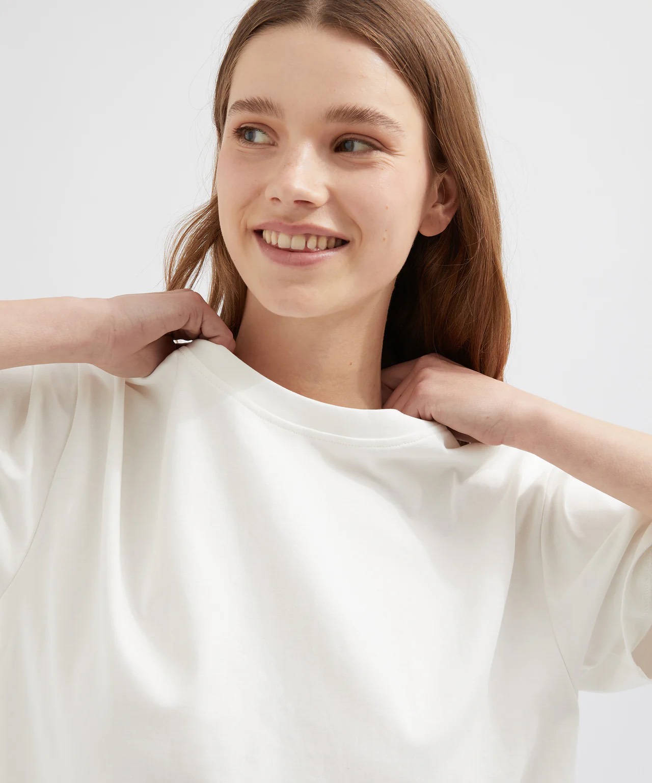 A core everyday essential, the relaxed tee is a slightly oversized, boxy silhouette. Made from a buttery 100% cotton jersey with subtle structure for ease and comfortability.