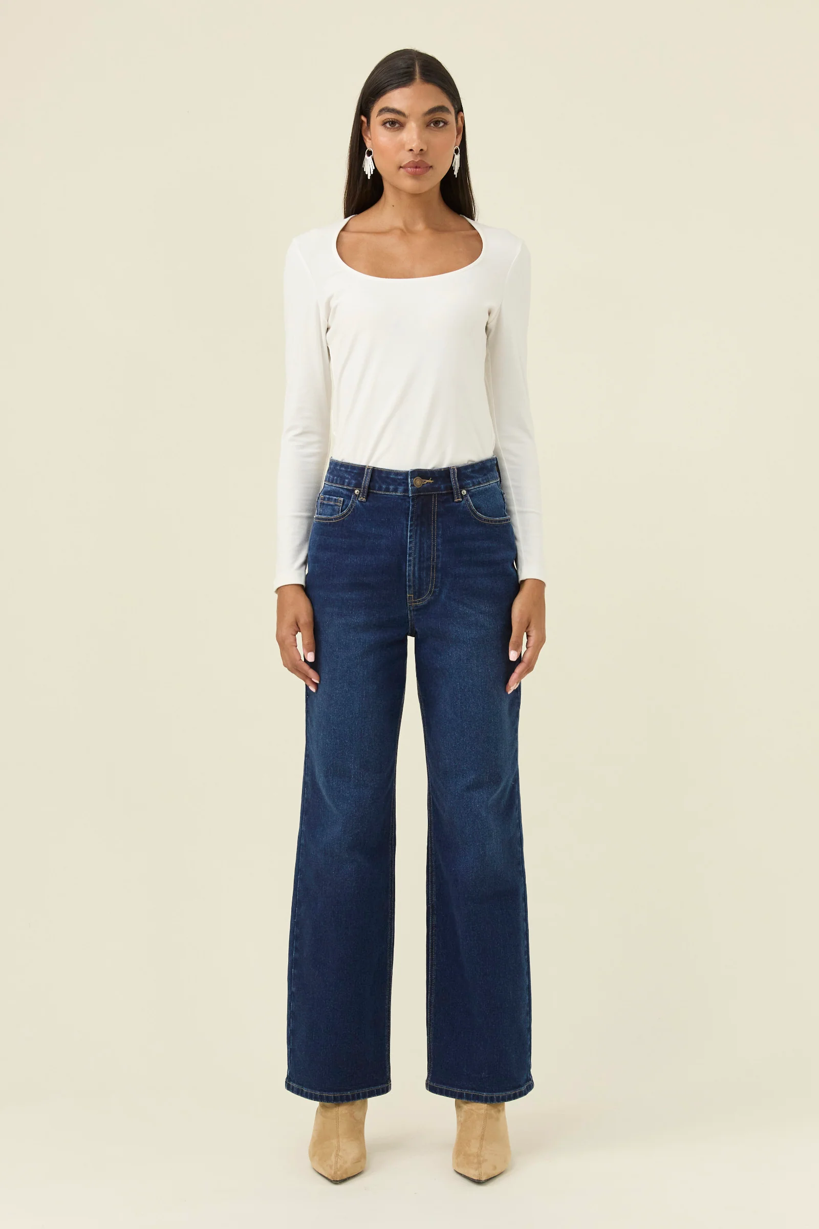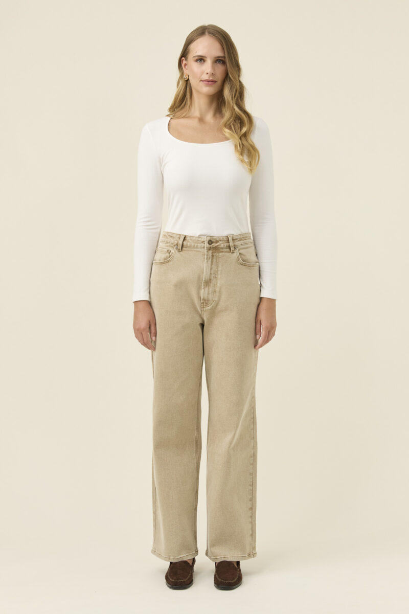 Say hello to your new favourite jeans. The scarlett jeans are a straight leg, stretch denim jean featuring a five-pocket design, zip fly and five belt loops. The canvas colour is a fresh take this season.
