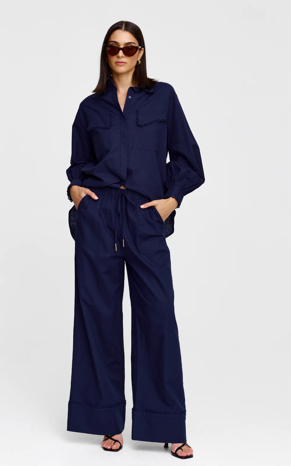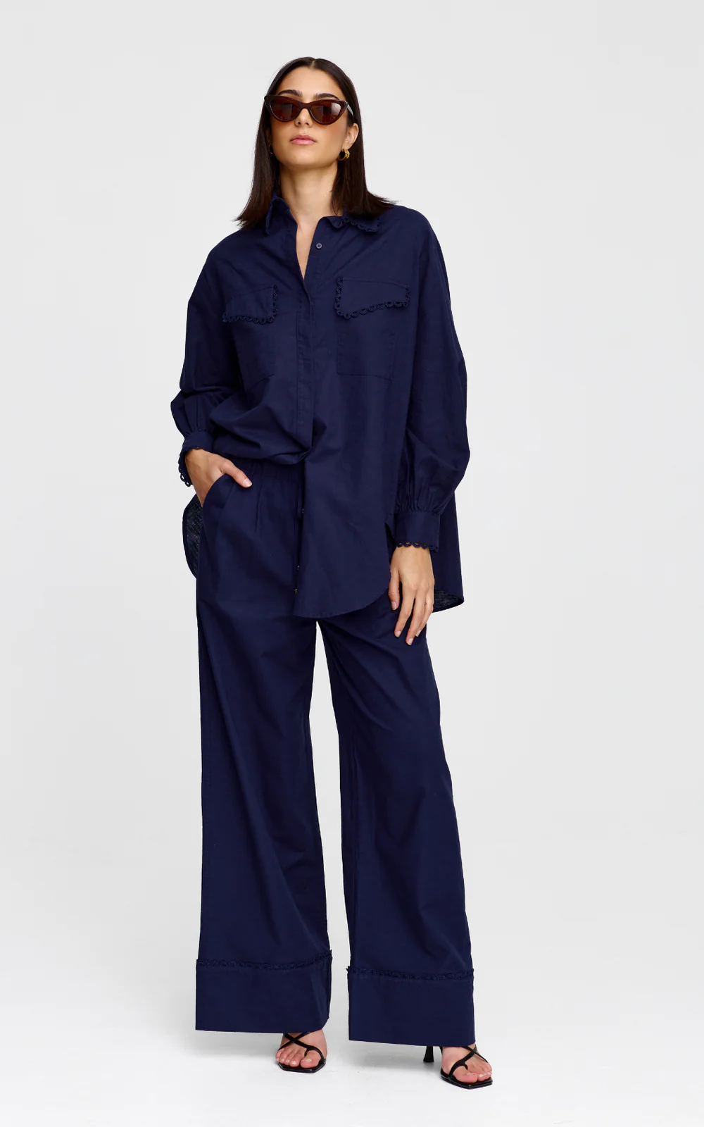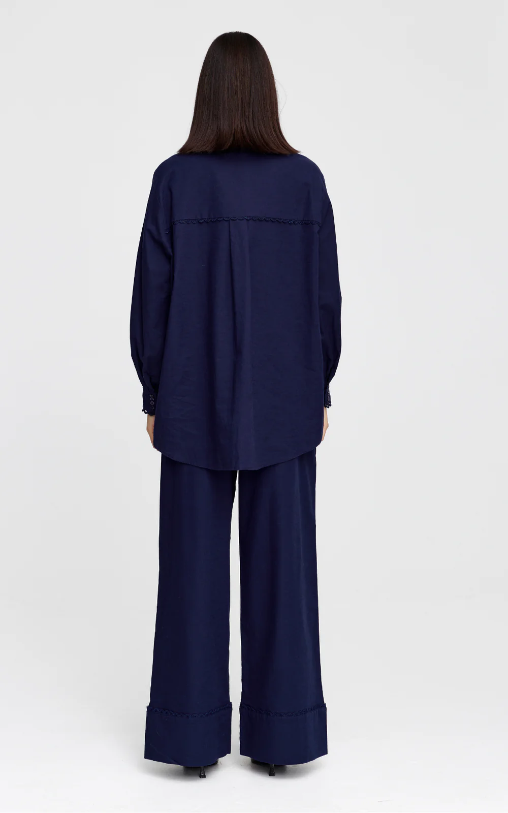 The Laurel Shirt is an elevated button-up shirt style with our new curved patch pockets and scallop trim. Design features include tailored cuffs, a double leaf collar and back yoke with box pleat detail.