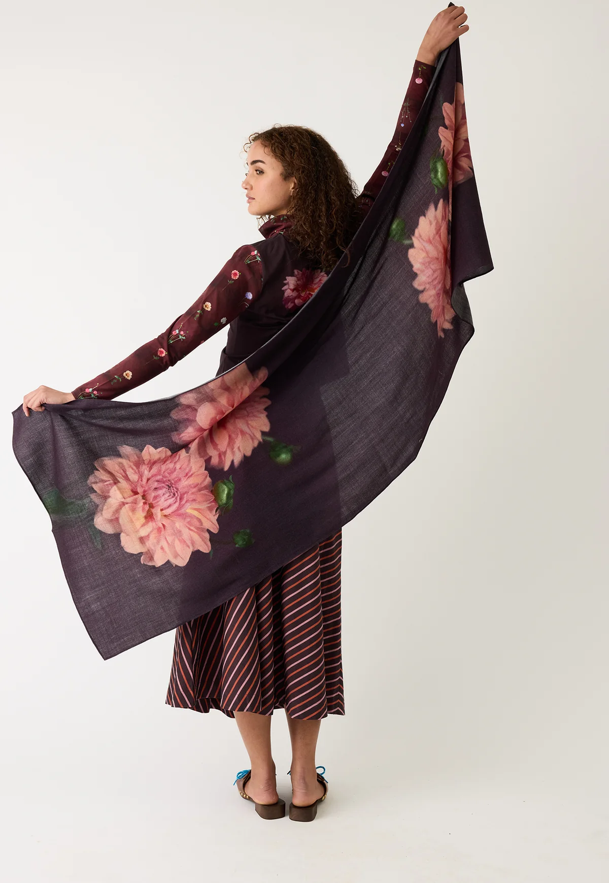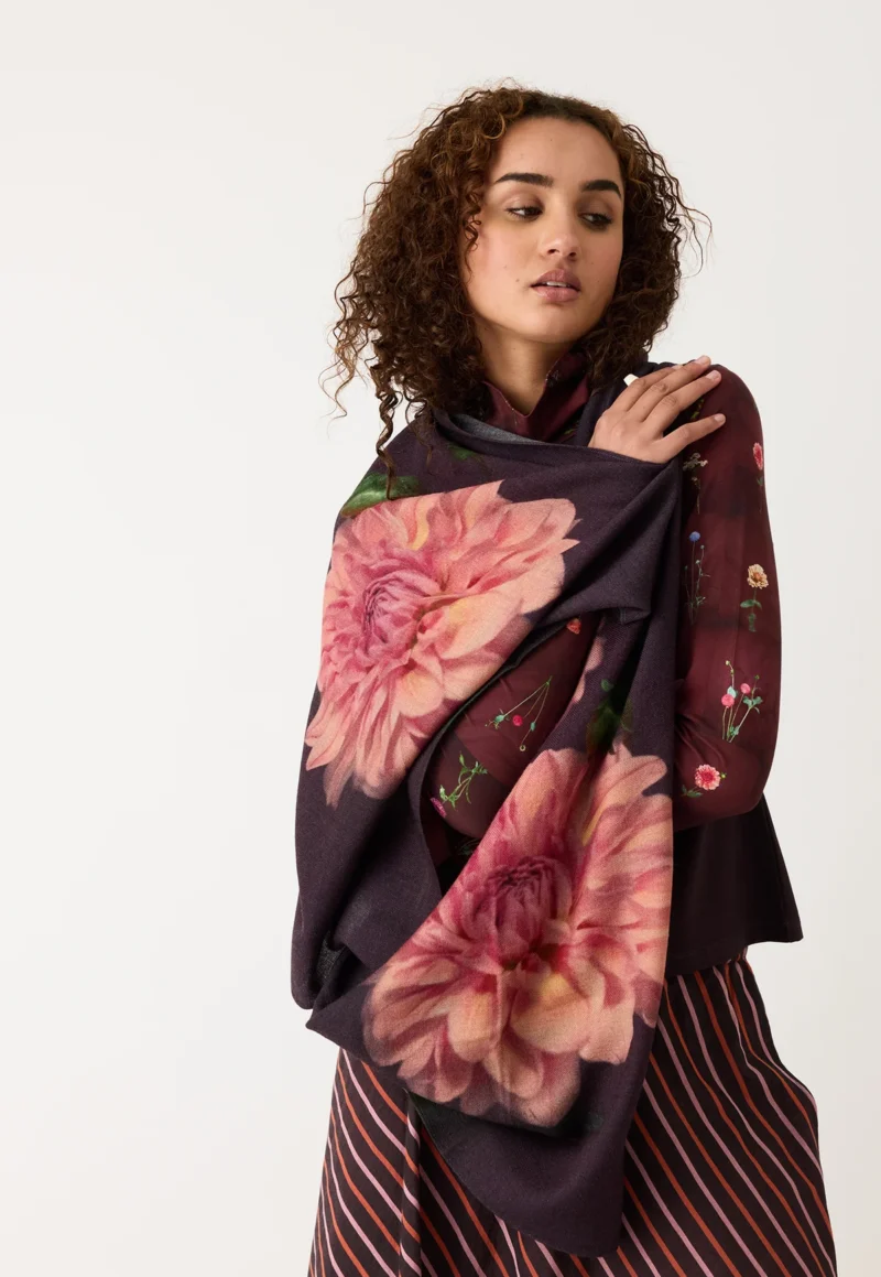 Keeping you warm with the softest wool crepe. This scarf is absolutely gorgeous and features the ‘Dahlia’ artwork of Nancybird’s founder Emily Wright.