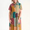 Slip it on and steal the scene…it’s that easy with this dress. Designed with a relaxed fit, it drapes effortlessly for an elegant flow. The button-down neckline, detailed with small centrebuttons, allows foradjustable comfort. Elbow-length sleeves add a billowy, feminine touch, while a subtle gathered detail atthe back enhances its breezy appeal.