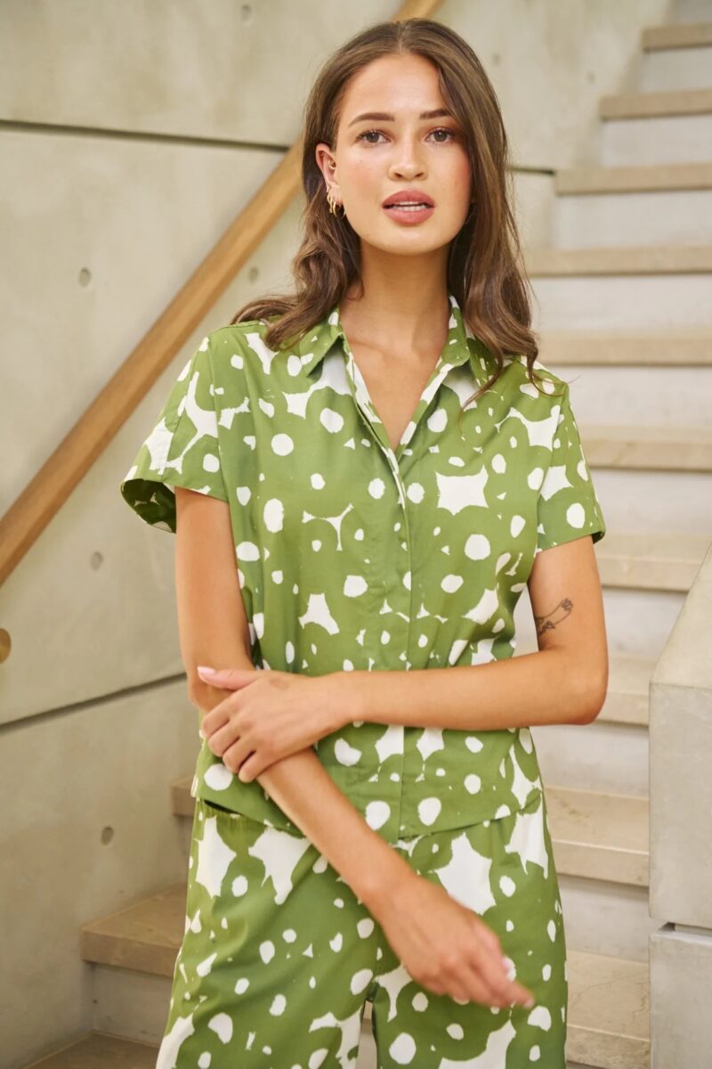 Indulge in the comfort of pure cotton with the Naturals by O & J Shirt in their moss barnacles print. Featuring a sleek collar and front placket with concealed buttons, down centre front, this shirt is sophisticated and versatile. Made with cool, breathable fabric, this shirt is the perfect addition to your wardrobe. Also works well opened up as a jacket.