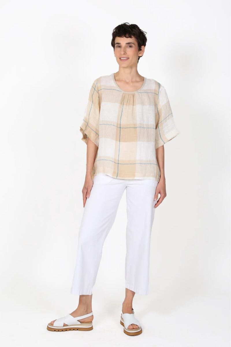 An easy, boxy silhouette designed for relaxed everyday wear, this oversized top offers effortless comfort with a touch of femininity. It features a softly gathered neckline with subtle detailing, adding gentle shape and charm. The wide sleeves and cropped hemline create a breezy, flattering fit that pairs beautifully with high-waisted bottoms. Lightweight and versatile, this top brings laid-back sophistication to warm-weather dressing, perfect for layering or casual styling.