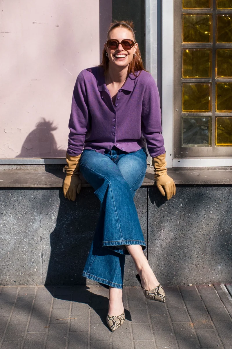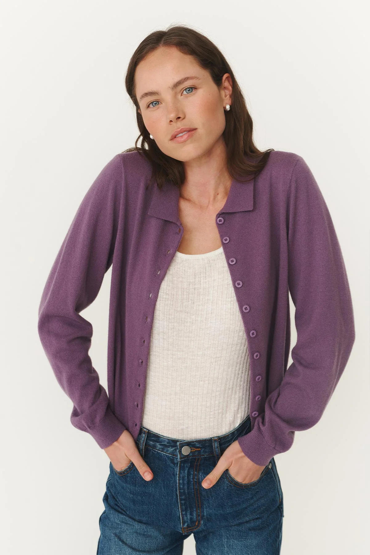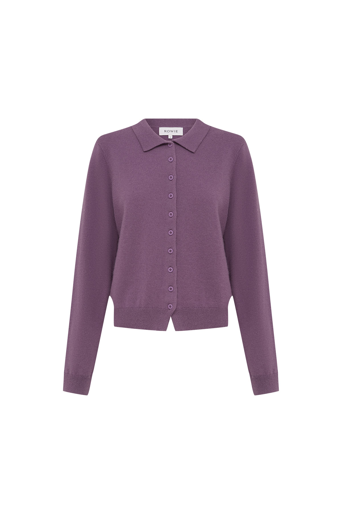 Crafted from an ultra-soft merino wool and cashmere blend, this collared button-up cardigan is shaped with fully fashioned knit construction for a clean, refined silhouette. Lightweight yet warm, it layers effortlessly under tailoring or worn alone as a knit top. A timeless ROWIE staple designed for everyday wear through cooler months and trans-seasonal dressing.