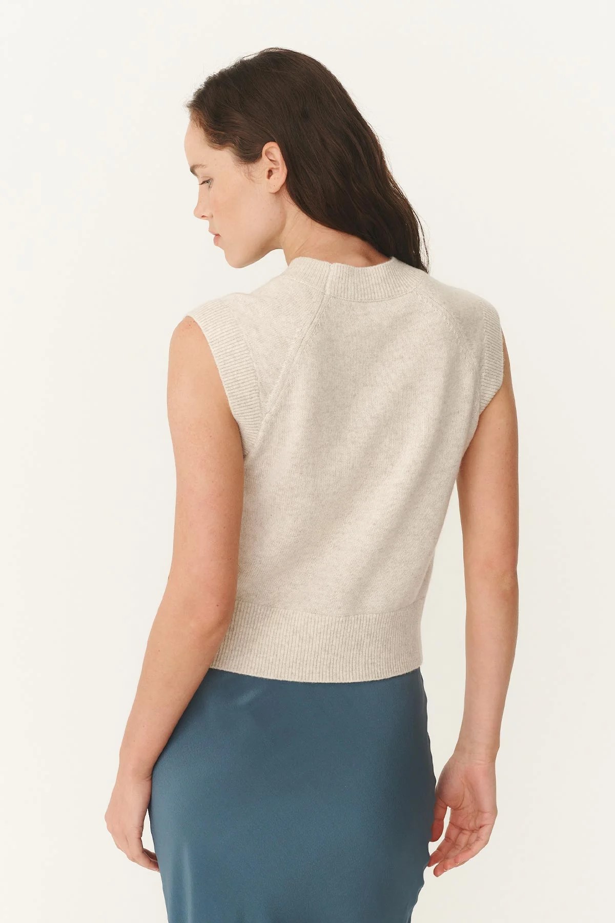 A women’s merino wool and cashmere knit vest in a modern boxy silhouette. Designed for layering over shirts or lightweight knits. A refined winter essential with effortless structure.