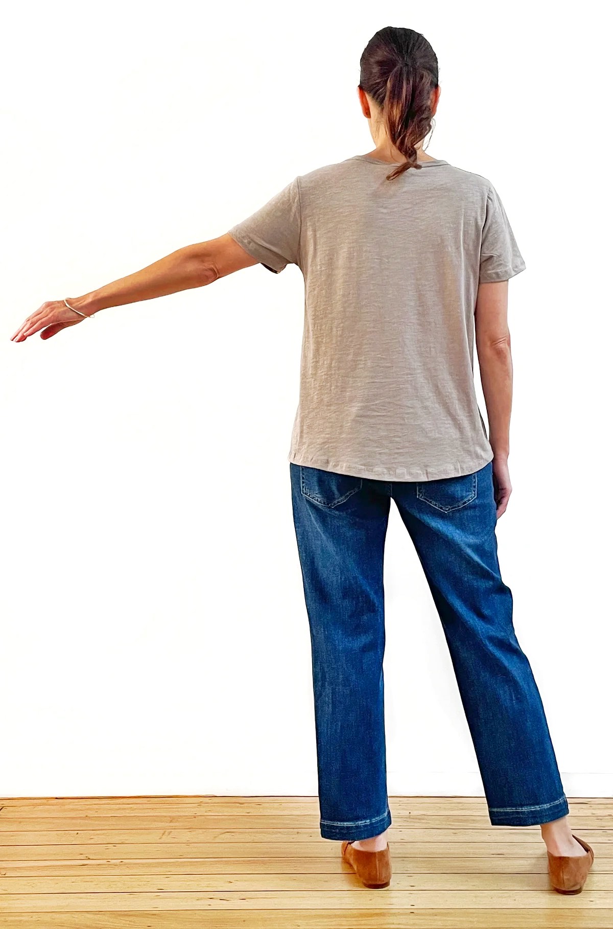 Made from 100% cotton slub jersey, A great casual year round staple that looks and great on it’s own or for laying under your favourite jacket. Features include short sleeves, a round neck and curved hem,