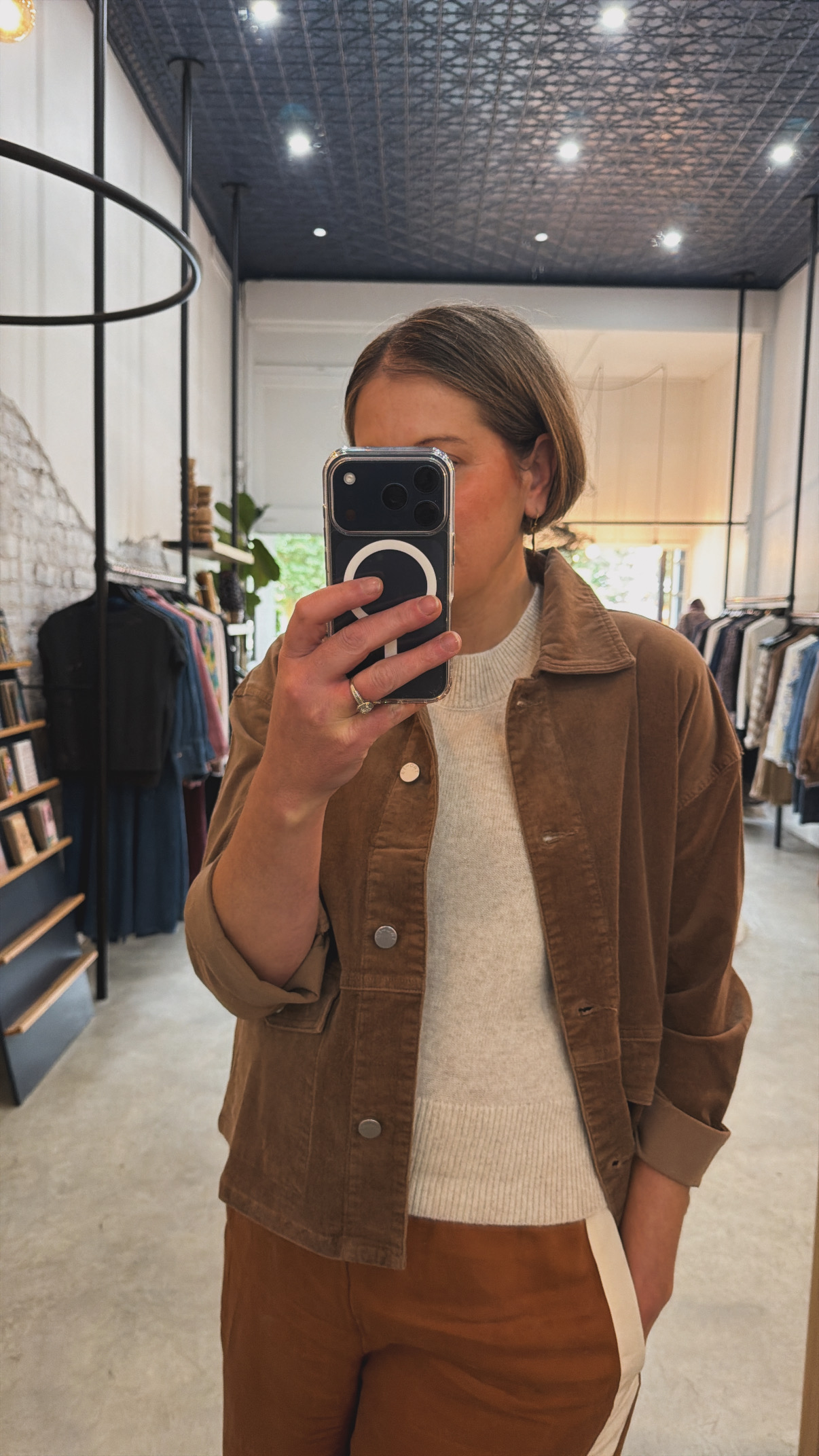 This baby cord jacket combines comfort with structure in a gorgeous toffee colourway. Crafted in a sott cotton with a small amount of stretch, this jacket is a perfect put on & go.