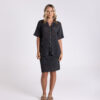 This elegant knitted skirt features a flattering tie waist and finishes gracefully at the knee, offering a refined silhouette. Crafted for comfort and style, it pairs beautifully with the matching knitted shirt to create a cohesive, sophisticated ensemble perfect for any occasion.